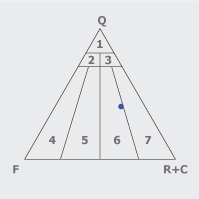 In base allo studio petrografico ed al diagramma Q-F-(R+C) Folk (1974) la composizione della Pietra Serena varia da arcose litica alitarenite feldspatica.
