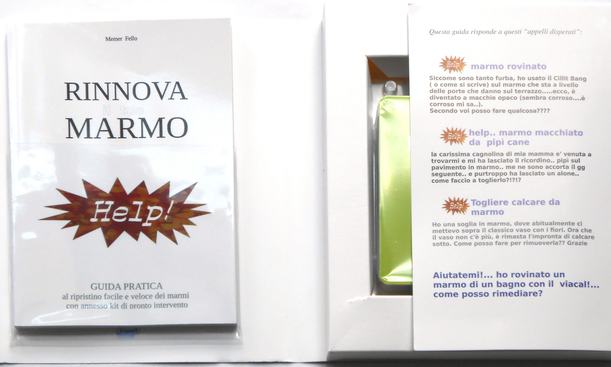 Affronteremo queste problematiche a tutto campo, suddividendole in diversi livelli di intervento. Ci soffermeremo un po’ più a lungo sul ripristino delle superfici dei “marmi” piuttosto che delle “pietre” in generale. Infatti, Il kit annesso al libro è specifico per il ripristino dei marmi e delle pietre carbonatiche in genere, e ci consente di mettere subito in pratica le informazioni fornite nella guida.
